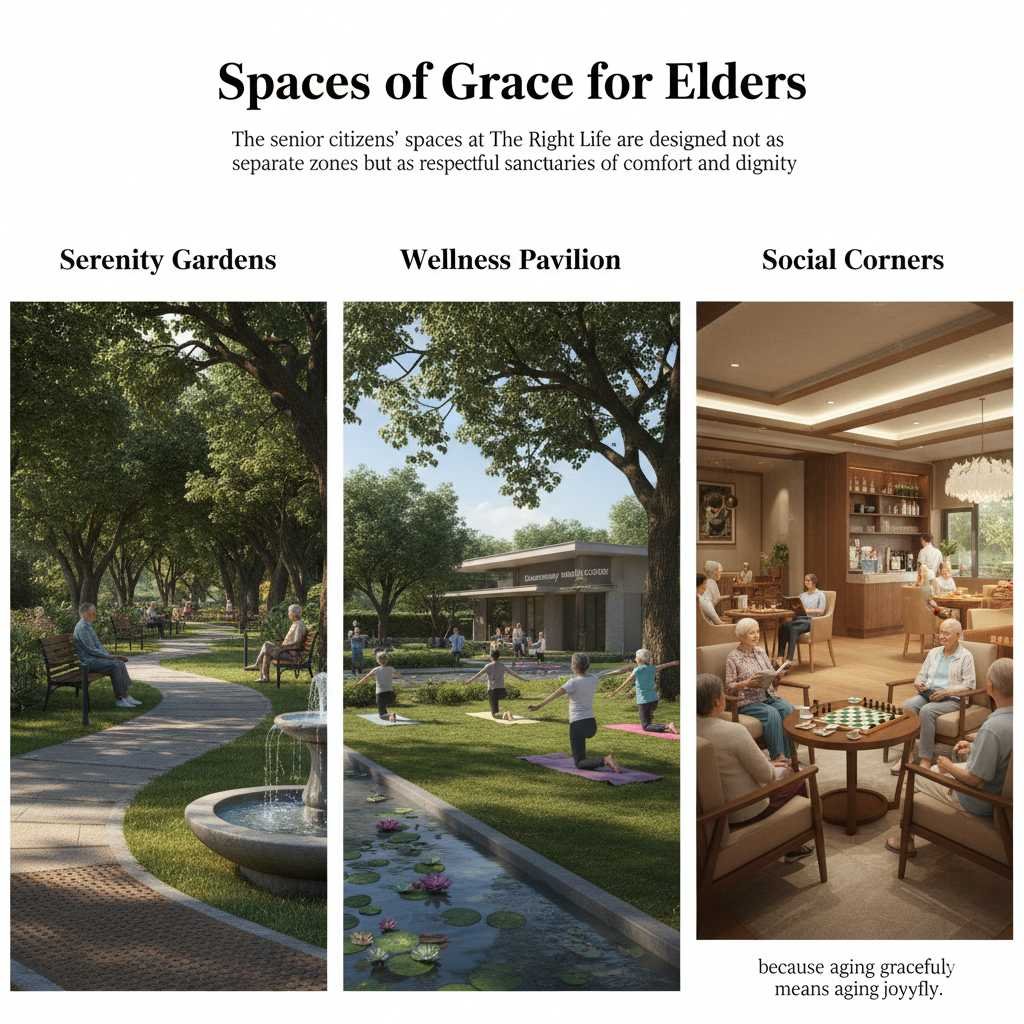 The senior citizens’ spaces at The Right Life are designed not as separate zones but as respectful sanctuaries of comfort and dignity.